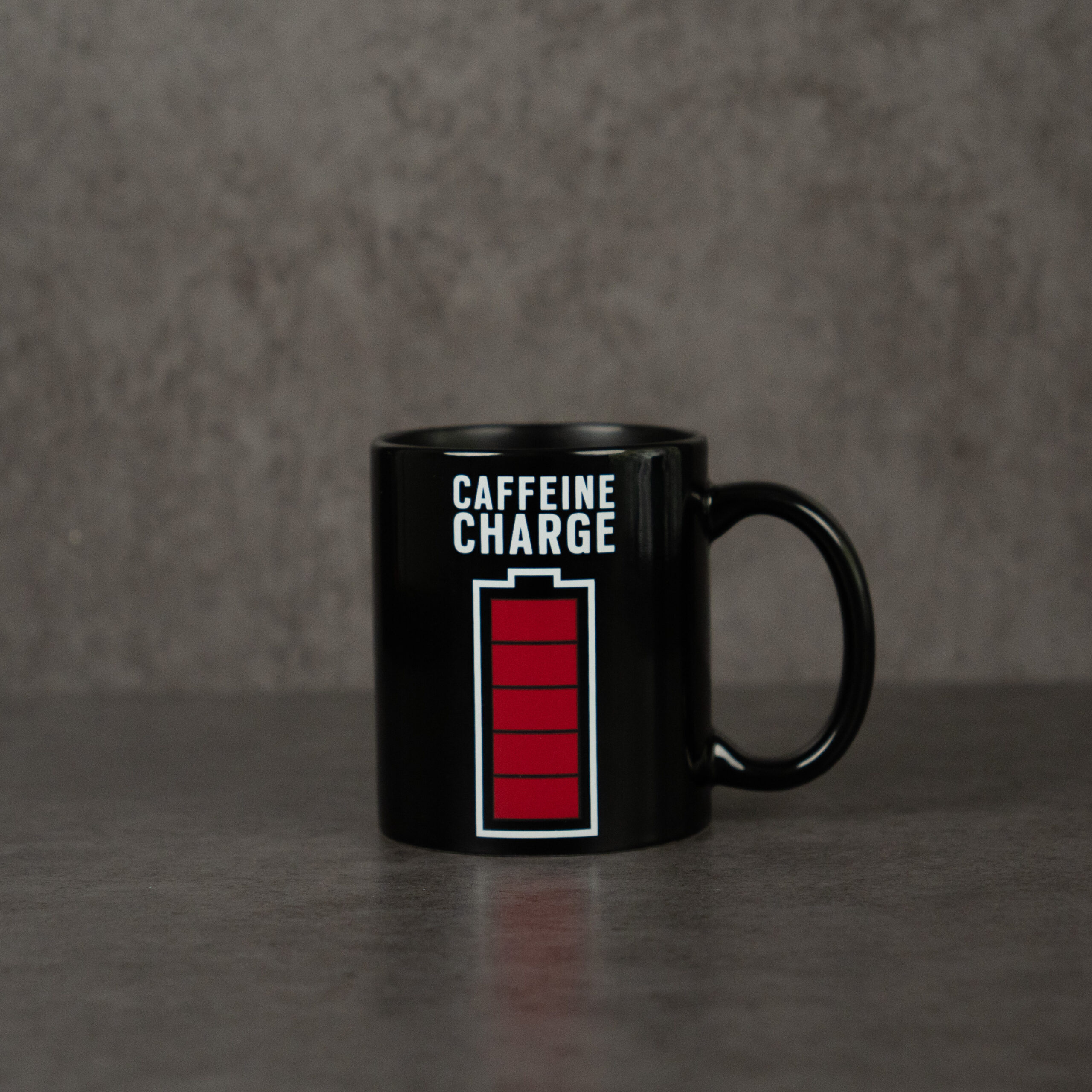 - Battery graphic that, reacting to heat, visually charges up as the mug is filled