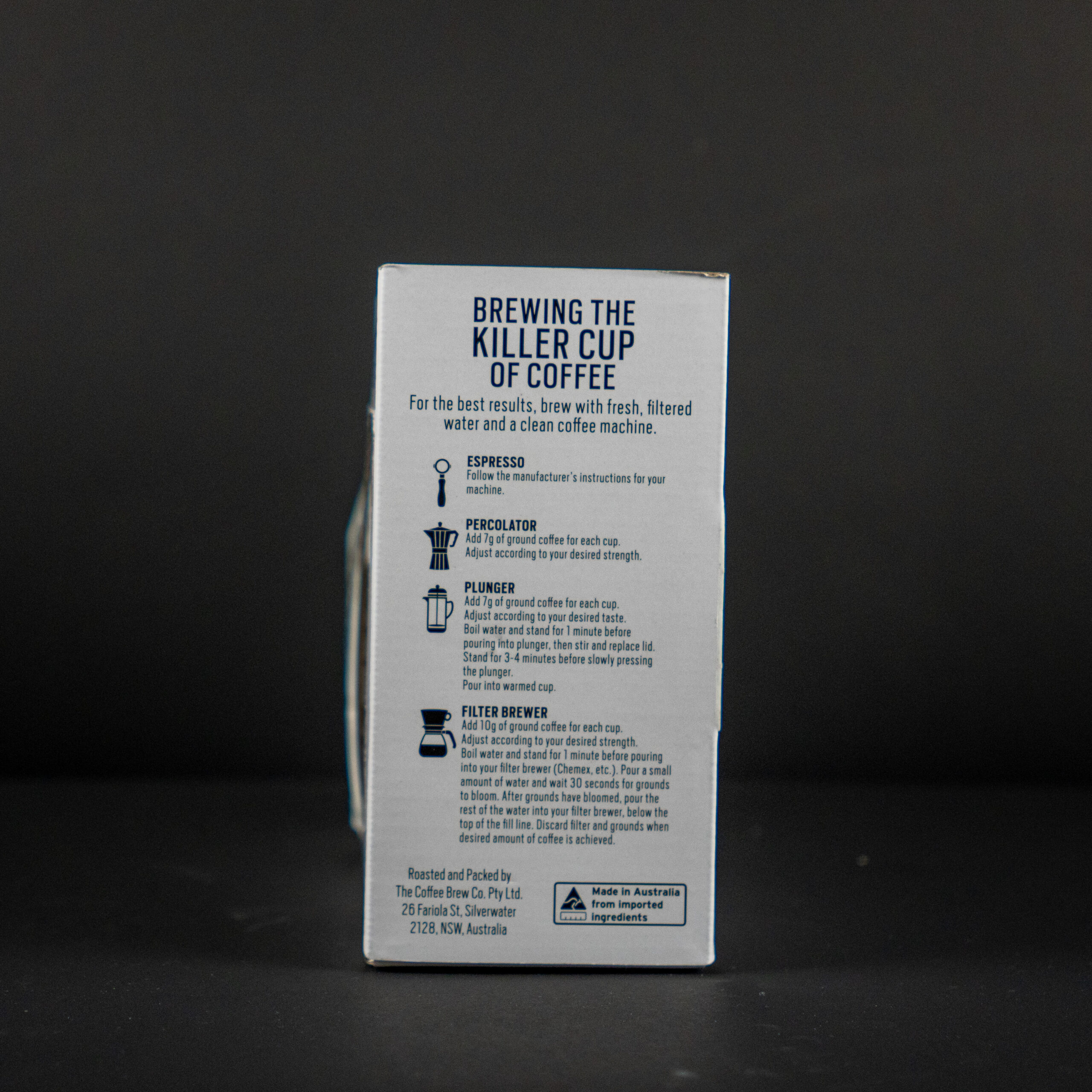 1 x 200g Killer Coffee Industrial Strength, available as Whole Beans or Universal Grind