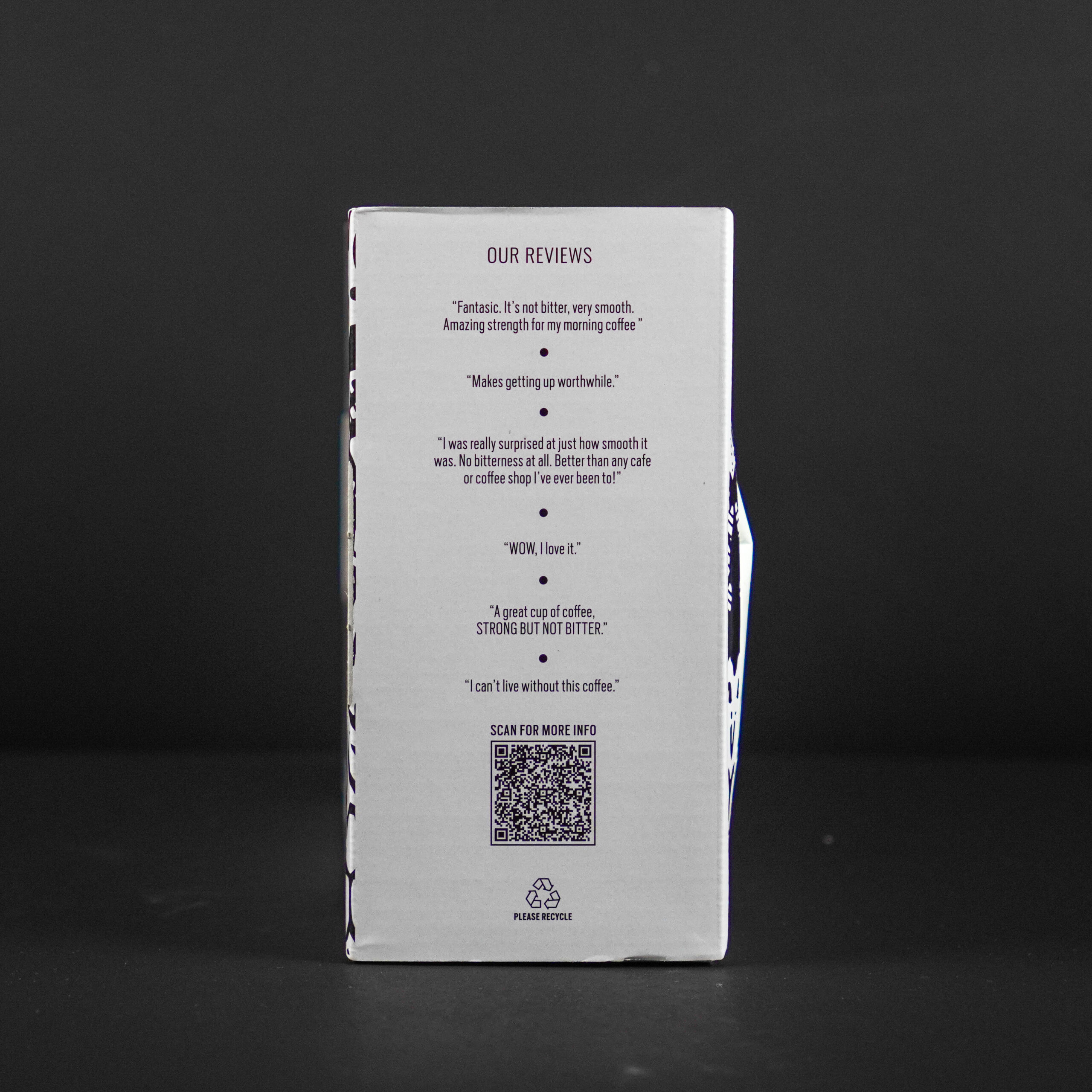 Make one hell of an impression with our INDUSTRIAL STRENGTH blend. Smooth, bold, and guaranteed to keep you wired. Forget the burnt, bitter brews masquerading as “strong”. This is a dark roast done right, totally bitter-free with bold caramel notes, a velvety finish, and a jolt that’ll power you through anything.