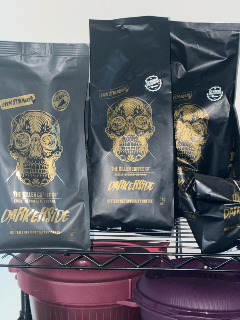 We Love Killer Coffee… we live rurally & our house is by far the preferred coffee spot….once we ran out & it was devastating! So glad KC is now available at retailers. Our favourite is the medium roast beans. Never disappoints. Shipping is fast ! Coffee in bed is the best!