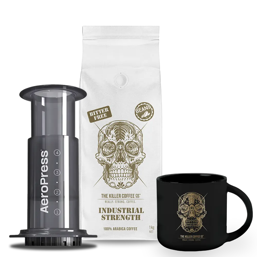The portable easy-to-use brewer that's taken the coffee world by storm. Need to get your caffeine hit quick, without compromising on flavour? Killer Coffee and the AeroPress coffee maker is your match made in heaven. Coffee grounds are brewed with full immersion and then pushed through a filter, creating your perfect cup in about a minute.